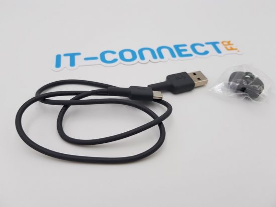 Le câble USB-C est également en silicone "doux", ce qui rend l'ensemble harmonieux. Les écouteurs sont aimantés : quand ils sont aimantés ensemble, cela mettra la musique en pause, et si vous les détachez la musique reprend.