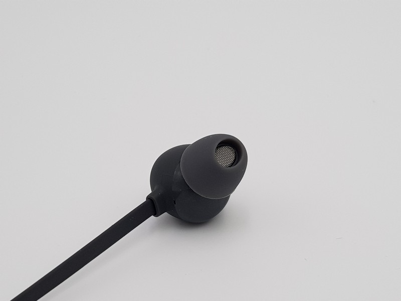 Le câble USB-C est également en silicone "doux", ce qui rend l'ensemble harmonieux. Les écouteurs sont aimantés : quand ils sont aimantés ensemble, cela mettra la musique en pause, et si vous les détachez la musique reprend.