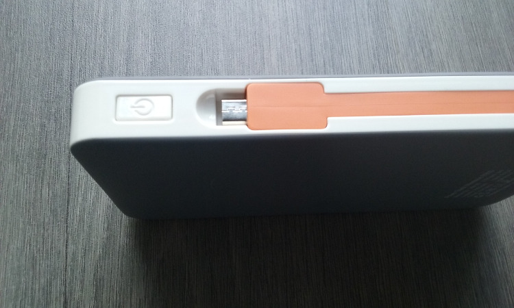 Le câble microUSB orange peut être rangé sur les bords de la PowerBank, comme ici :