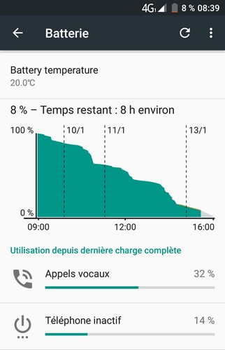 Par ailleurs, en retirant complètement la connectivité réseau (4G/Wi-Fi), le smartphone a tenu presque 5 jours d'autonomie, avec 1 heure de communication téléphonique par jour (environ).