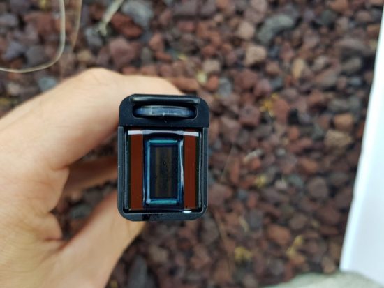 Ensuite, pour imprimer, il suffit d'appuyer une seule fois sur le bouton prévu à cet effet, de tenir l'imprimante bien à la verticale, et de faire un mouvement vers la droite pour réaliser l'impression. C'est le fait d'appuyer la petite roue qui est à l'extrémité de l'imprimante et de commencer "à rouler" qui va déclencher l'impression. Clairement, il faut s'entraîner pour réussir à réaliser une impression propre, car ce n'est pas évident de tenir l'imprimante bien droite et de faire un mouvement fluide.