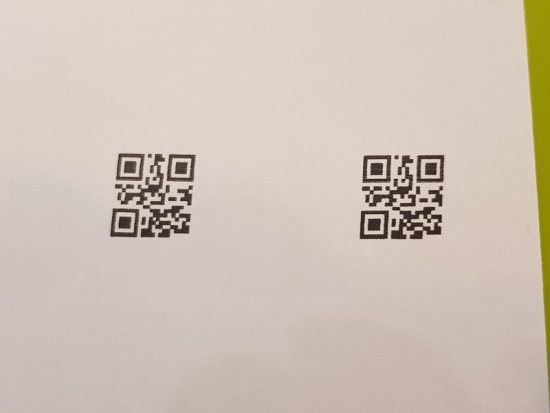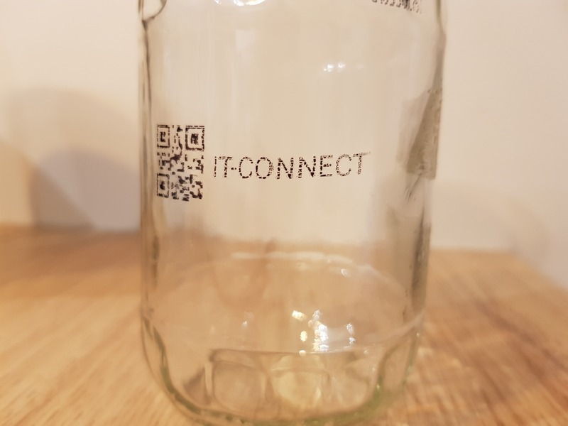 Un autre exemple avec un QR code, avec un également un essai sur du verre. Autant sur de l'impression papier ou carton, il n'y a pas de problème, alors que sur le verre, mais en laissant sécher 24 heures, l'encre s'efface directement. L'impression sur le verre n'est pas parfaite non plus, enfin il faut dire qu'ici la surface n'est pas plate.