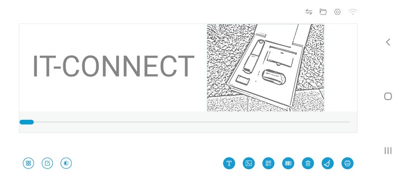 Cette imprimante qui se présente sous la forme d'un gros surligneur est accompagnée par une application complète qui permet de créer des code-barres, des QR code, du texte, mais aussi d'ajouter du contenu personnalisé (logo, photo, etc.). Le tout peut être mixé dans un même motif à imprimer. Le seul hic c'est la difficulté à se connecter par moment à l'imprimante, mais j'imagine qu'une mise à jour firmware viendra rectifier le tir...