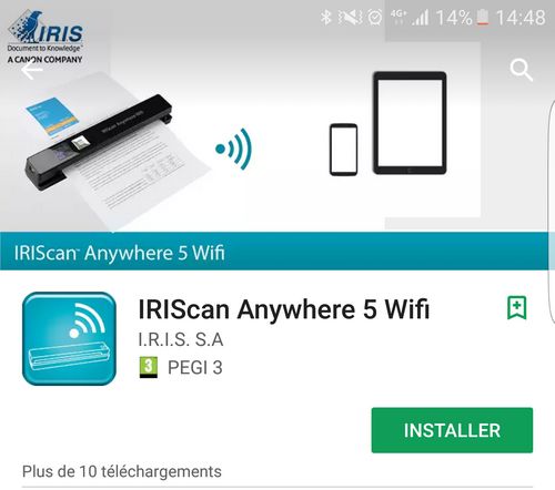 Une application gratuite est disponible pour Android et iOS, pour récupérer ses documents ou même faire du "Scan Direct" que nous allons voir juste après. Fiche de l'application : IRIScan Anywhere 5 Wifi