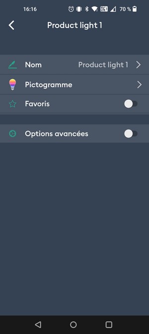 Une fois l'appareil ajouté, on peut le retrouver dans la liste de ses équipements. C'est dommage que suite à l'ajout, ce ne soit pas directement proposé de renommer le nouvel équipement, en l'occurrence ici l'ampoule Easy, car c'est une action quasi obligatoire pour s'y retrouver quand on a plusieurs objets connectés. Toutefois, c'est possible dans un second temps à partir des menus de l'application. En complément, une fonction permet de localiser l'ampoule en la faisant clignoter.