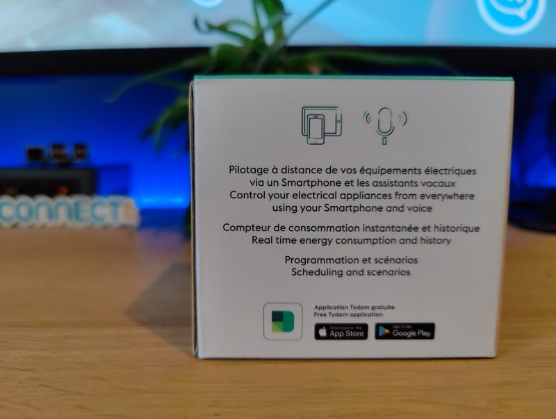 A la lecture des différentes informations inscrites sur la boîte de la prise connectée Delta Dore, on apprend beaucoup de choses sur les caractéristiques :