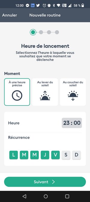 La section "Routine" permet de créer des scénarios et de programmer des actions. Par exemple, vous pouvez créer une routine pour éteindre automatiquement la prise tous les soirs à 23h, sauf le samedi et le dimanche : ce type d'action automatique est un bon moyen de couper totalement certains appareils et de faire des économies sur sa facture d'électricité. Ainsi, un appareil en veille sera totalement coupé comme s'il était déconnecté.