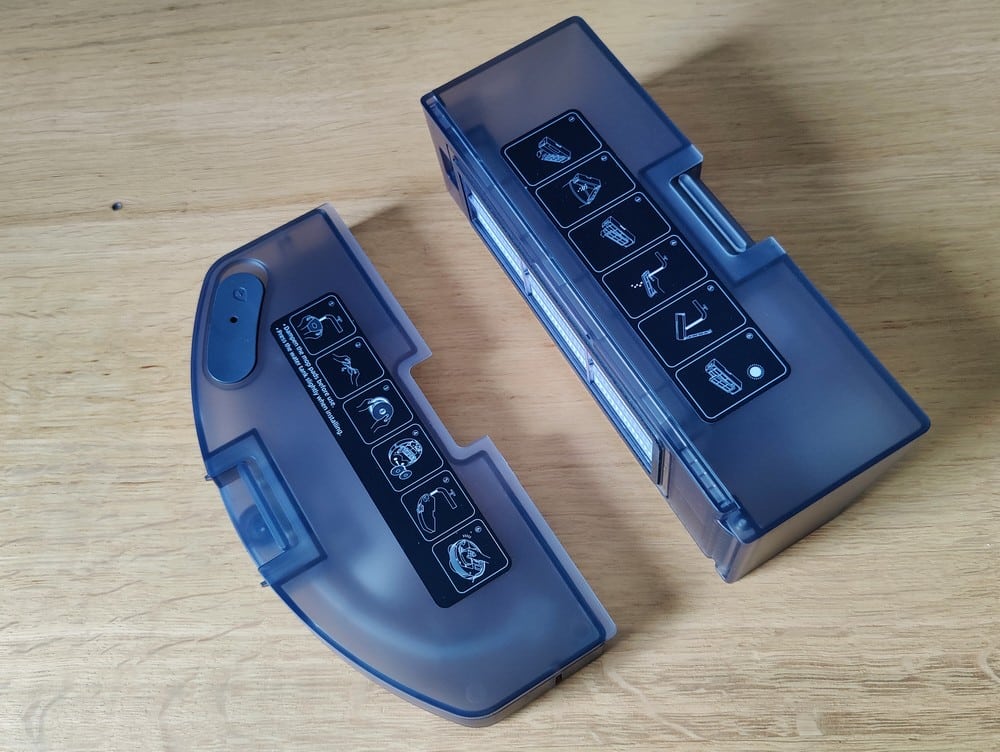 Le réservoir à poussière a une bonne capacité, ce qui permet d'assurer au moins un nettoyage complet sans devoir le vider. Il intègre un filtre HEPA (amovible) ainsi qu'un autre filtre en nylon (non amovible). Si l'on se réfère à la documentation du robot, il faudra remplacer ce filtre toutes les 150 heures d'utilisation. Quant au réservoir à eau, sa capacité est un peu en dessous de la moyenne, ce qui pourra s'avérer gênant en fonction du débit d'eau que vous choisissez et de la surface à laver.