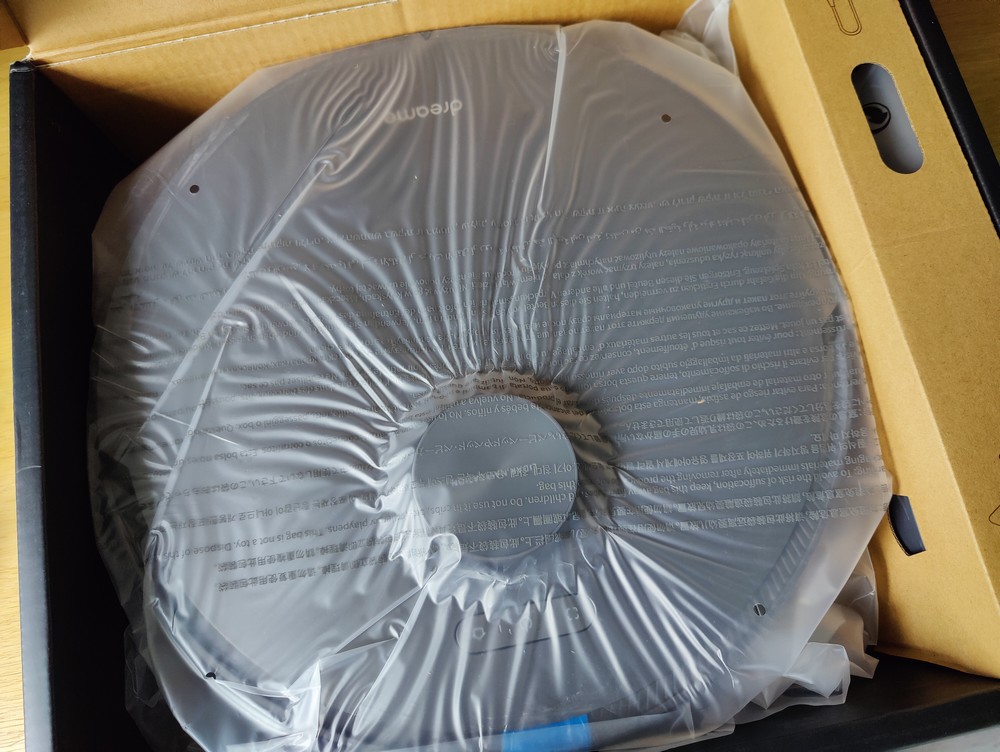 Le DreameBot est livré dans une boîte à la fois imposante et rassurante. Le robot est mis en évidence sur cette jolie boîte brillante qui renferme tous les éléments. L'ensemble est bien protégé, les cartons sont épais et le robot aspirateur bénéficie en prime d'un emballage en plastique recyclé.