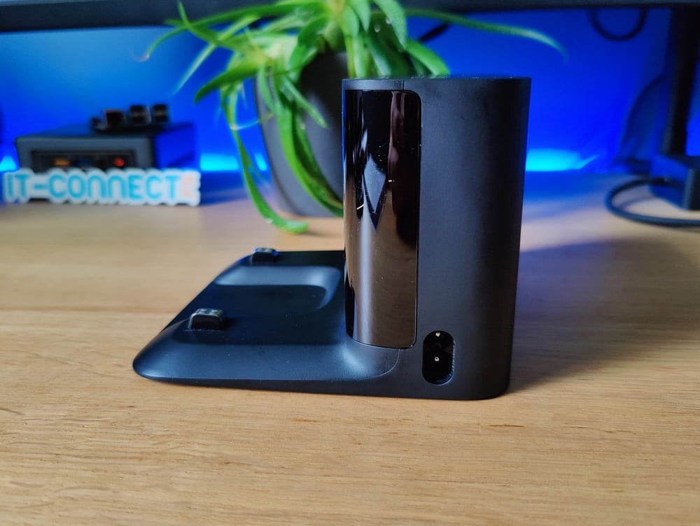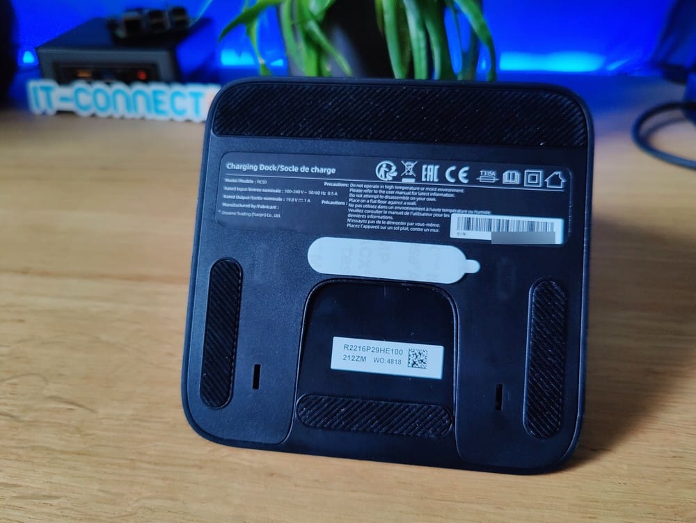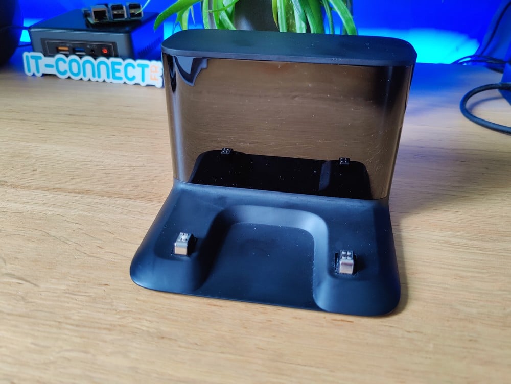 La station de charge est compacte, mais relativement basique puisqu'elle ne sert qu'à recharger le robot. On est très loin de la station multifonctions du modèle DreameBot LS10s Ultra. Néanmoins, elle assure le minimum : servir de point d'ancrage au robot et lui permettre de se recharger. Malheureusement, à l'arrière, il n'est pas possible d'enrouler le surplus du câble d'alimentation. Dommage.