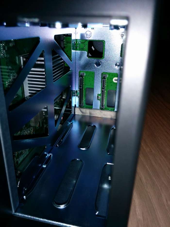 Sans les racks, voici la vue que l’on a de l’intérieur du NAS :