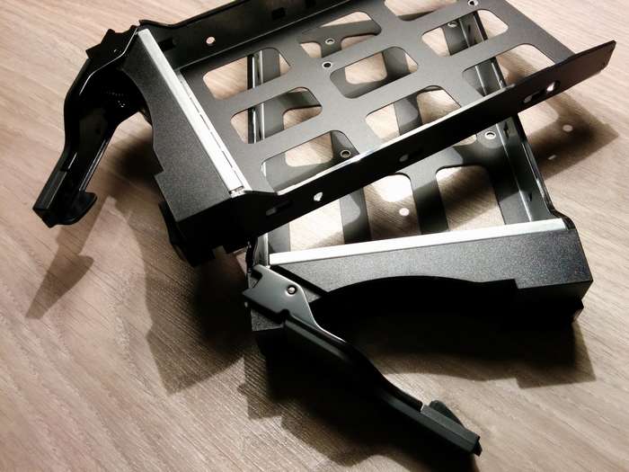 Pour le montage, va falloir sortie la caisse à outils ! J’exagère un peu, mais disons que pour monter les disques sur les racks, il faut un tournevis. En effet grâce à une pression en façade, sur le bas d’un rack, on peut l’éjecter en le tirant vers soi, on répétant l’opération sur chaque rack ils seront tous les deux éjectés.