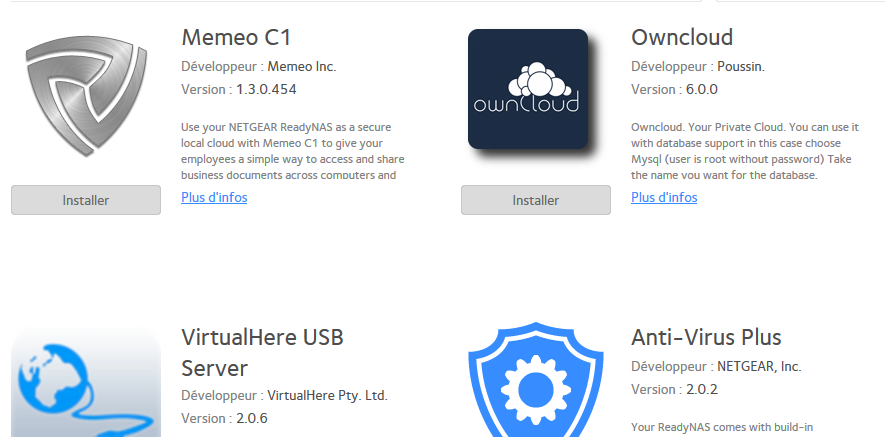 Voici un rapide tour d'horizon des services proposés et que l'on peut rapidement activer sur le ReadyNAS :