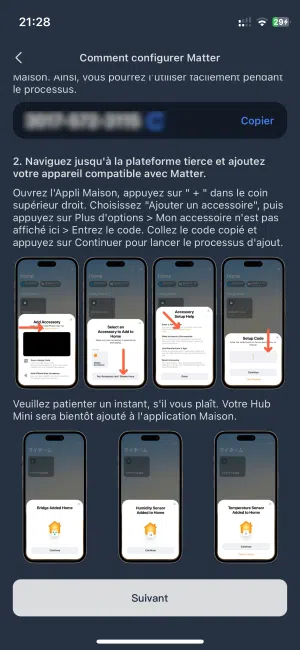 Pour ajouter les périphériques dans l’application Apple Home, il faut un contrôleur Matter Apple type Home Pod.