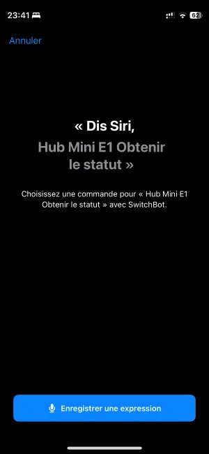 Pour Siri (disponible si vous utilisez l’application sur un smartphone ou tablette Apple), il est simplement nécessaire d’enregistrer la commande vocale nécessaire pour la(es) fonction(s) souhaitée(s).