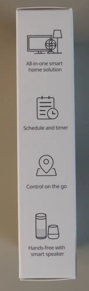 Le HUB mini est, comme son nom l’indique, assez petit. Il est de forme carrée avec les angles arrondis et de couleur blanche. Il est composé de deux parties en plastique dur dont la partie arrière s’encastre dans la partie avant pour le montage. Bien que les finitions soient propres, la qualité du plastique me semble de niveau inférieur aux autres produits testés de la marque. Mais, cela est peut-être (voir surement) lié au besoin du produit et de sa fonctionnalité IR, car aucune diode n’est visible sur le produit.