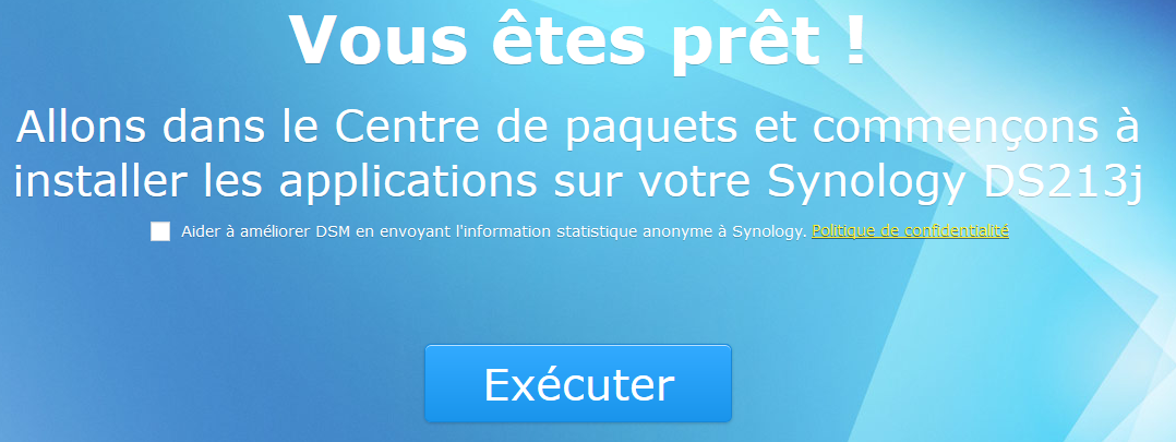 On arrive maintenant à la fin de l’initialisation de notre petit NAS, le DSM nous propose maintenant d’aller ouvrir le centre de paquets. Le Centre de paquets DSM est l’endroit dans lequel nous allons pouvoir chercher, trouver, installer et désinstaller les applications qui vont se trouver sur notre NAS et étendre ses possibilités :
