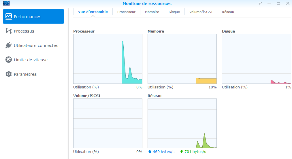 Ainsi que des graphiques sur chacun des composants du NAS :