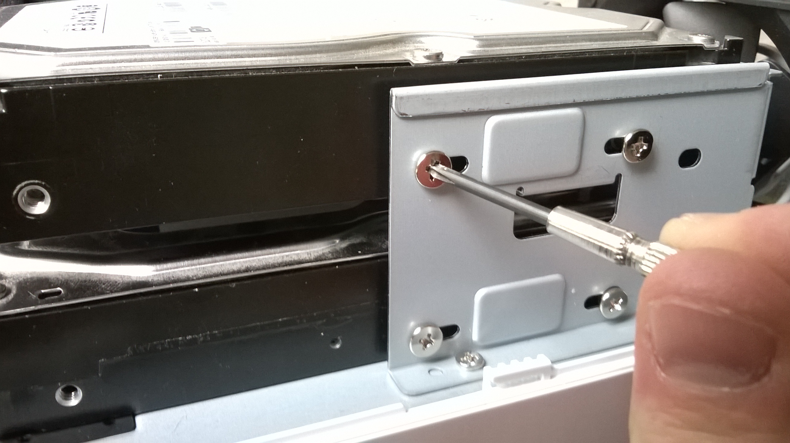 Il nous suffira ensuite de visser les 8 visses pour fixer correctement nos disques durs :