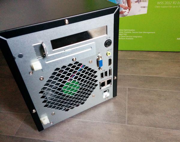 Le système d'exploitation installé est une version Essentials, en quelque sorte "étendue" puisqu'elle comprend le "Windows Server Essentials Media Pack". Ceci permet de faciliter la création de partages pour mettre à disposition du contenu multimédia sur le réseau, et le rendre accessible au sein de différents lecteurs, comme le lecteur Windows Media Player. Le protocole DLNA est notamment implémenté pour permettre la diffusion du contenu sur le réseau.