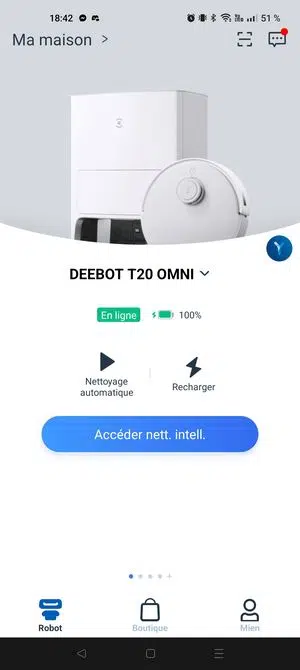 Pour finir, parlons de l'application Ecovacs Home, un allié indispensable pour piloter votre robot DEEBOT. Personnellement, je suis habitué à utiliser cette application depuis plusieurs années, car j'ai pu tester de nombreux modèles de chez Ecovacs. Pour l'utilisation des fonctions de base, l'application est intuitive. Il ne faudra pas hésiter à parcourir les différents menus pour atteindre les fonctions avancées.