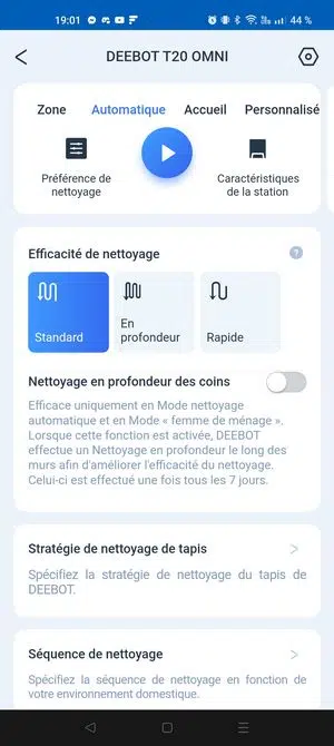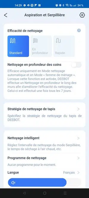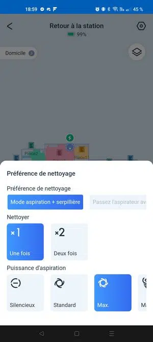 L'autre avantage de ce robot, c'est que l'application permet de personnaliser son comportement quand il va nettoyer votre logement. De ce fait, vous pouvez lui demander d'aspirer plus fort, ou de nettoyer ses patins de lavage plus fréquemment, si vous estimez que c'est bénéfique pour nettoyer vos sols. Ces ajustements sont intéressants, car les résultats pourront différer d'un type de sol à un autre.
