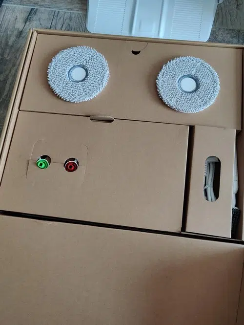 - Deux serpillières de lavage lavables, à positionner également sur le robot