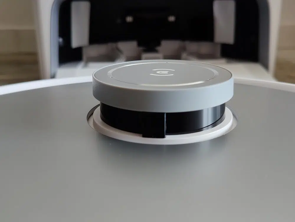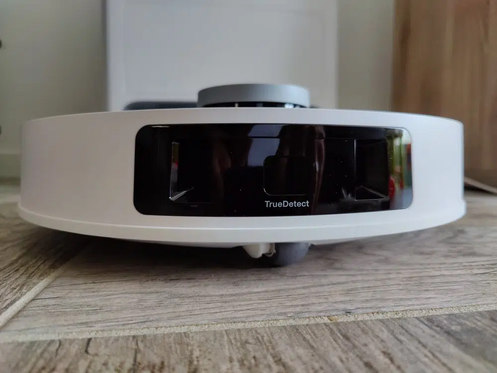 Sur le dessus, une tourelle surplombe le robot : il s'agit du capteur LiDAR, qui correspond à la technologie TrueMapping d'Ecovacs et utilisé par le robot pour détecter son environnement. Pour la navigation et la détection de l'environnement, ce capteur est associé à la technologie TrueDetect 3D qui correspond au bloc noir sur la face avant du robot. Ces technologies doivent permettre au robot de détecter les murs, les meubles, les petits objets sur le sol, ainsi que les câbles, le tout grâce à l'imagerie 3D.