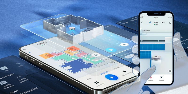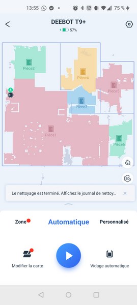 La cartographie de votre logement est générée en temps réel sur l'application Ecovacs Home, où vous pouvez suivre également la progression du robot.