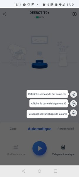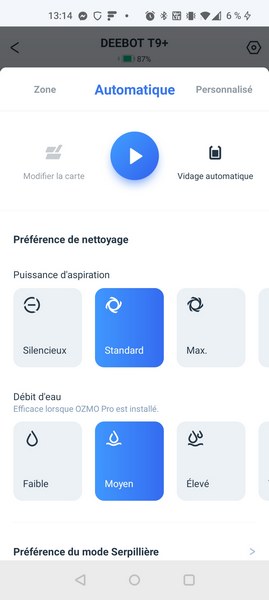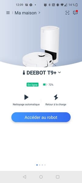 Ecovacs a profité du lancement de sa nouvelle gamme de robots pour améliorer son application Ecovacs Home et revoir partiellement son ergonomie. Le menu principal qui permet de lancer un nettoyage est plus grand, ce qui lui permet d'être plus épuré.