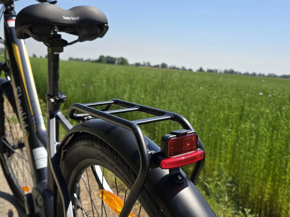 Eleglide a également prévu un feu avant, accompagné d'un réflecteur, et qui peut être activé ou désactivé à partir de l'écran de contrôle. Le feu arrière, quant à lui, doit être allumé ou éteint à l'aide d'un bouton présent directement sur le côté droit du feu. C'est étonnant que les deux feux ne soient pas contrôlables depuis l'écran, ou éventuellement le guidon.