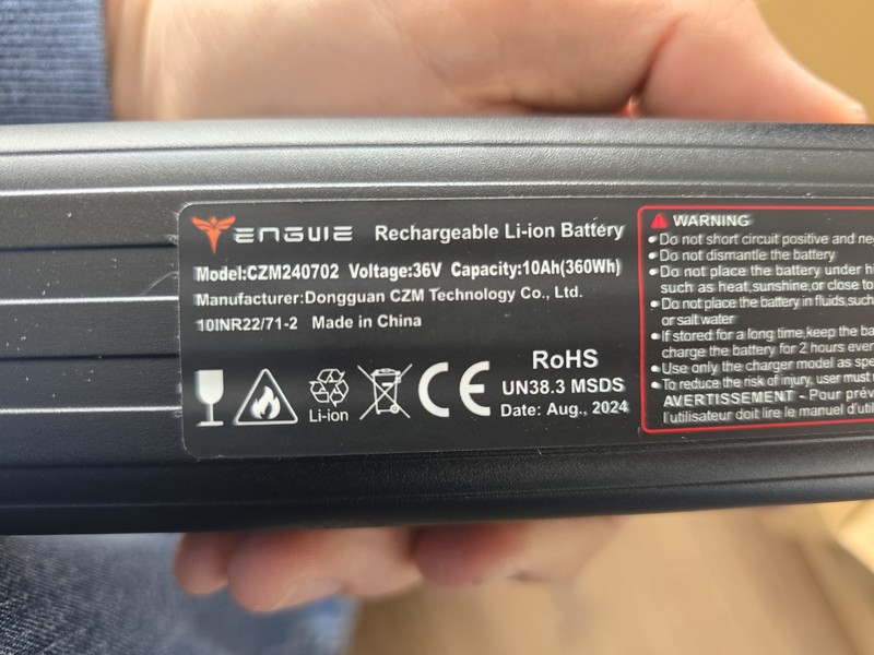 Viendra ensuite l'heure de recharger la batterie Samsung de ce vélo. Sachez qu'il n'y a pas de charge rapide (contrairement au ENGWE N1 Pro), donc comptez entre 6 et 8 heures pour recharger la batterie complètement.
