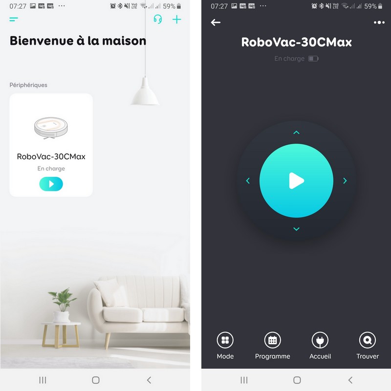 Le robot peut être pilotée directement depuis l'application EufyHome grâce à la télécommande virtuelle, mais aussi grâce à la possibilité de déclencher le mode de nettoyage automatique. En complément, la télécommande physique permet également de le piloter et démarrer un nettoyage sans utiliser son smartphone. L'application est agréable à utiliser et surtout elle est simple à utiliser.