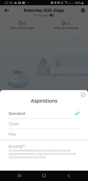 Ce n'est pas la première fois que je remarque que l'autonomie annoncée par Eufy sur la fiche technique est inférieure à l'autonomie réelle de l'appareil. Le robot G30 Edge peut tourner au moins pendant 2 heures alors que l'autonomie annoncée est de 110 minutes.