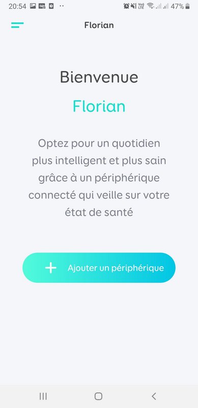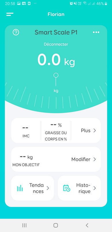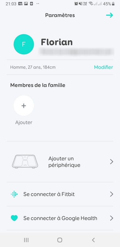 L'ajout de l'appareil via Bluetooth s'effectue facilement : il suffit de monter sur la balance pour l'activer et déclencher le Bluetooth, ensuite elle est rapidement détectée par l'application.
