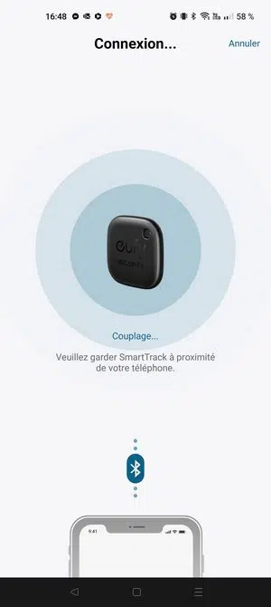 Sur Android, nous sommes limités à la portée du Bluetooth : ce qui aura rapidement ses limites pour retrouver un objet perdu. À l'inverse, pour ceux qui vont utiliser le SmartTrack Link avec un iPhone, ils n'auront pas besoin de l'application Eufy Security et ils pourront bénéficier du réseau Localiser d'Apple.