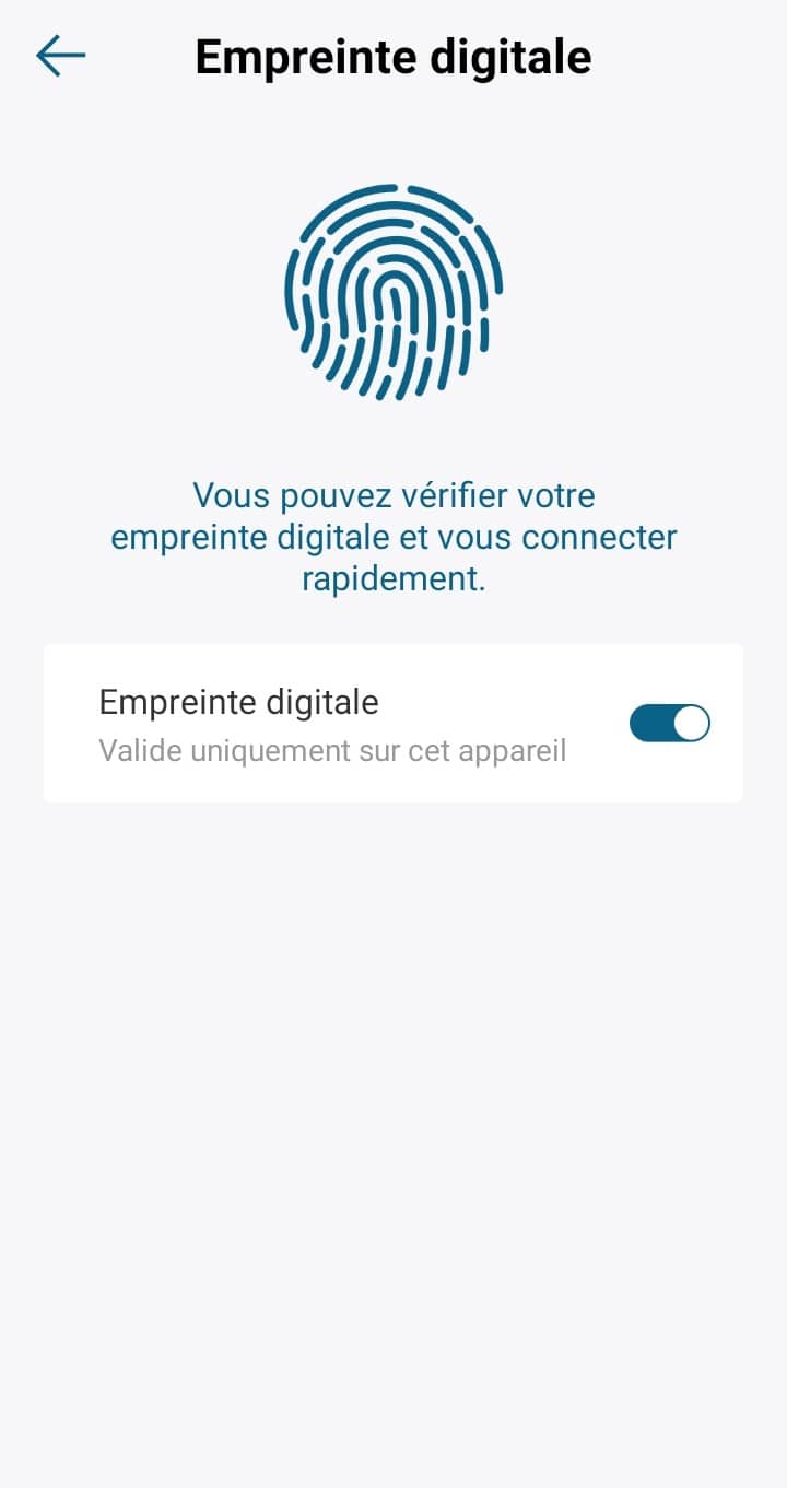 Arrêtons-nous un moment sur la sécurité de votre compte Eufy. Vous avez la possibilité de configurer votre empreinte digitale pour vous connecter à votre compte, celle-ci vous sera uniquement demandée à la connexion. Votre compte étant tout le temps connecté, l’empreinte n’est jamais demandée… Sinon, vous devez déconnecter votre compte Eufy dès que vous quittez l’application, mais ce n'est pas pratique. C’est dommage que cette sécurité ne soit pas appliquée à l’ouverture de l’application.