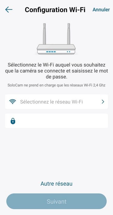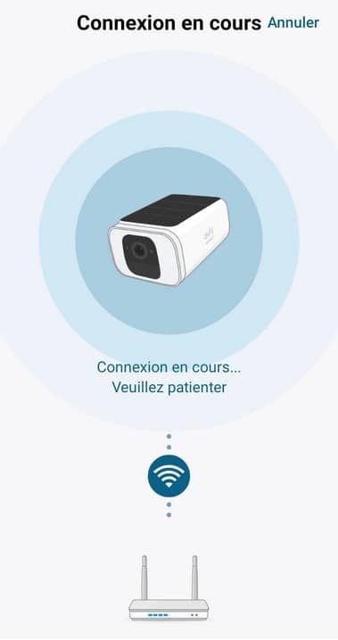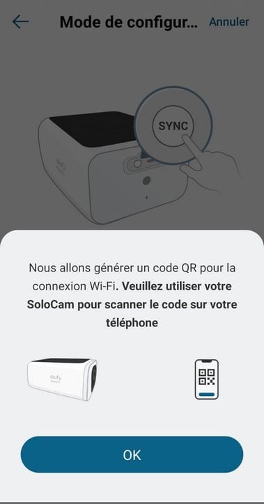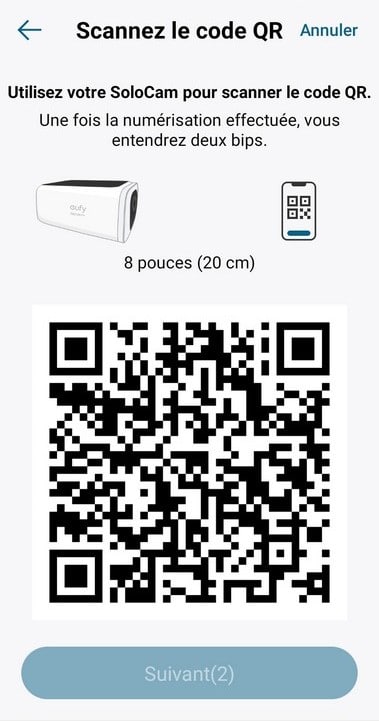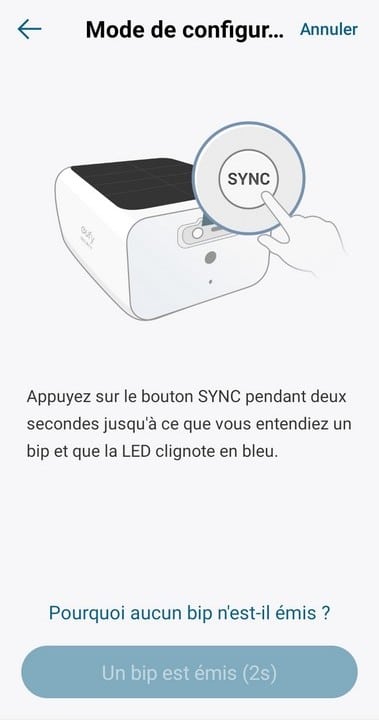 Pour piloter la caméra depuis votre smartphone vous devez télécharger l’application "Eufy Security". L’appairage se fait de façon simple, vous commencez par créer/connecter votre compte Eufy. Il faut ensuite choisir votre modèle de caméra parmi le catalogue produit du constructeur, l’application vous demande de configurer le wifi (SSID + clé). La caméra fonctionne uniquement avec le wifi 2,4GHz. Une fois cette étape passée, vous devrez appuyer sur le bouton Sync situé derrière la caméra. Pour terminer, vous devrez scanner un QRCode avec votre appareil. Le setup est bien détaillé et très intuitif. En bonus vous retrouverez tous les conseils d’installations dans un petit tutoriel.