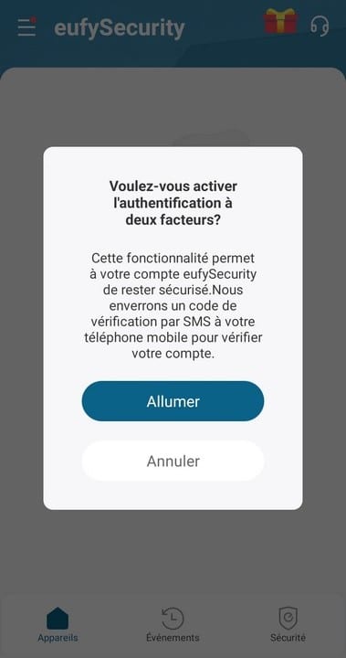 En complément vous pouvez configurer la double authentification en renseignant votre numéro de téléphone. Un SMS de confirmation vous sera alors envoyé. Vous pouvez ajouter votre téléphone comme appareil fiable et aucun code ne vous sera demandé si vous déconnectez puis reconnectez votre compte Eufy sur votre téléphone. Cette fonctionnalité permet de s’assurer qu’aucune autre personne ne pourra utiliser votre compte sur un autre appareil sans votre consentement.