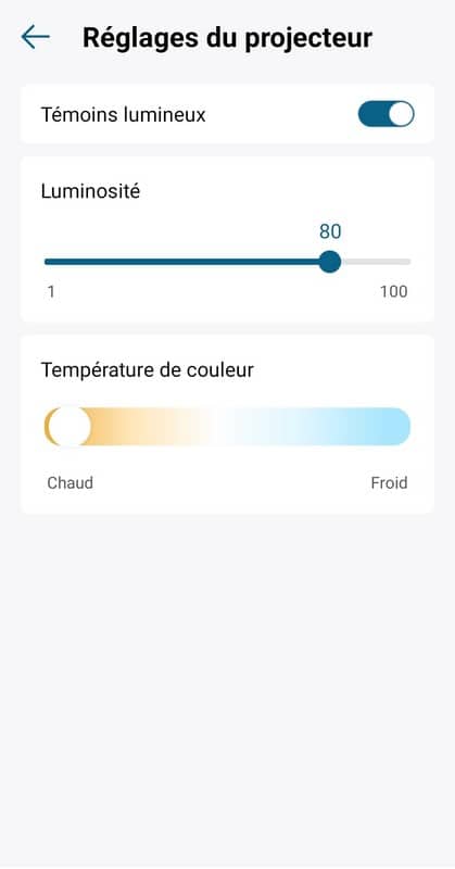 Comme précisé précédemment l'utilisation du projecteur LED a un impact sur le niveau de batterie.
