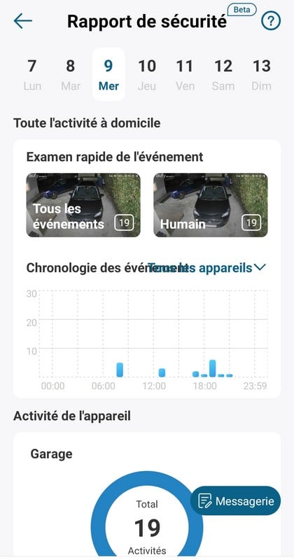 Rapport de sécurité : Permets d’avoir un résumé sous forme graphique des détections de la journée. Pour le moment il semble qu’une seule semaine d’historique soit disponible. S'agissant d'une fonction bêta, il faut s'attendre à ce que cette fonctionnalité évolue dans les prochaines versions.
