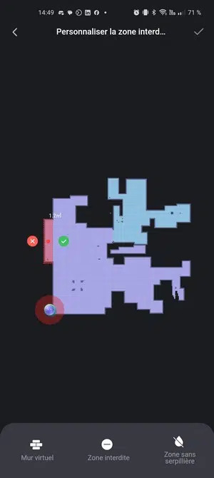 - Création de murs virtuels, de zone à ne pas nettoyer, ou de zone où il faut seulement aspirer et donc ne pas utiliser la serpillière.