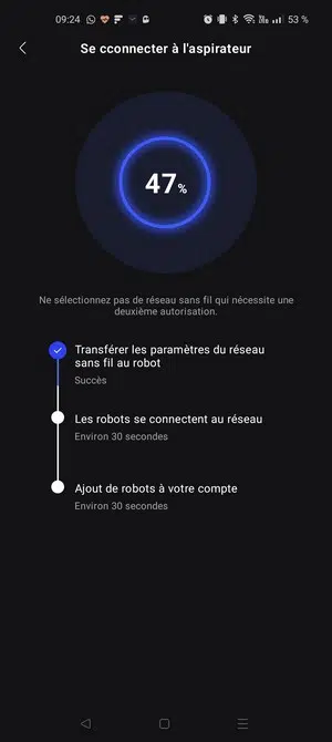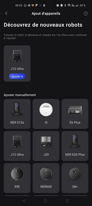 Une fois que le matériel est en place et allumé, la suite se passe dans l'application officielle baptisée "eureka robot" qui sera présentée plus largement dans la suite de cet article. Après avoir créé un compte utilisateur, le robot peut être ajouté à l'application : il suffit de se trouver à proximité pour qu'il soit détecté. Le processus d'intégration à l'application est très simple. Le robot se connecte au réseau Wi-Fi, via une connexion en 2.4 GHz.