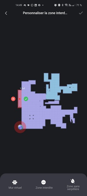 - Création de murs virtuels, de zone à ne pas nettoyer, ou de zone où il faut seulement aspirer et donc ne pas utiliser la serpillière.