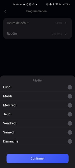 - Planifier un nettoyage : un seul nettoyage ou un nettoyage régulier plusieurs fois dans la semaine à une heure spécifique.