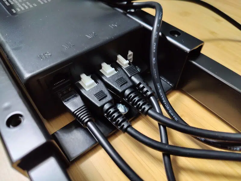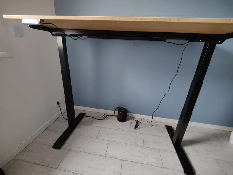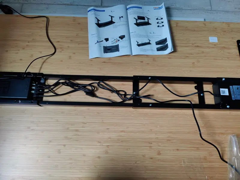La principale difficulté, c'est la gestion des câbles, ou plutôt de la longueur de câbles. Il faut s'assurer que les câbles soient suffisamment longs lorsque le bureau est en position haute. Et, il faut aussi s'assurer que l'installation reste propre lorsque le bureau est en position basse. Parfois, les câbles sont courts... J'en ai fait l'expérience avec le câble d'alimentation de l'un de mes deux écrans. Dans ce cas, il faut changer le câble pour utiliser un plus long à la place ou sinon utiliser une multiprise que l'on pourrait fixer sous le plateau du bureau ou au châssis.