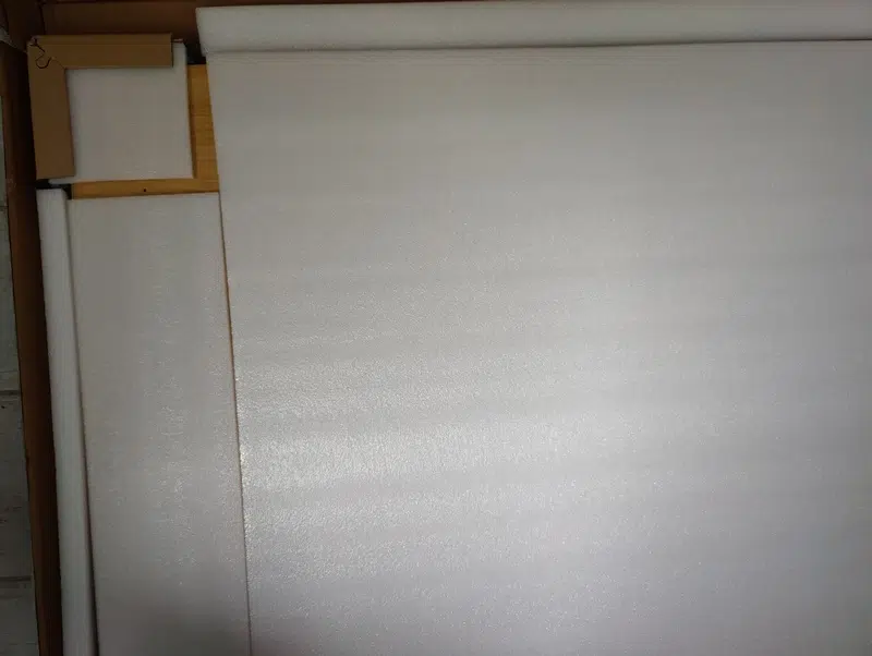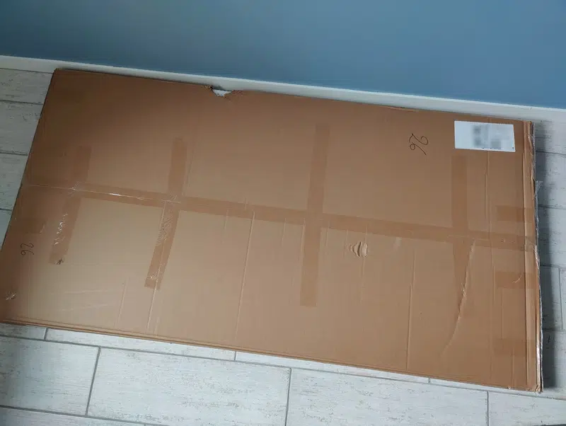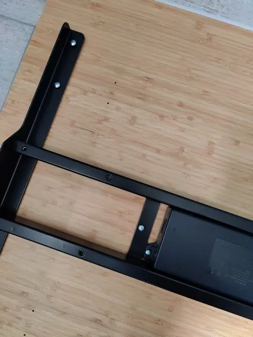 Le châssis est lui aussi bien emballé et protégé, au même titre que le plateau. À noter que ce carton pèse plus de 30 kilos. À cela s'ajoutera le poids du plateau, ce qui fait un bureau avec un poids non négligeable.