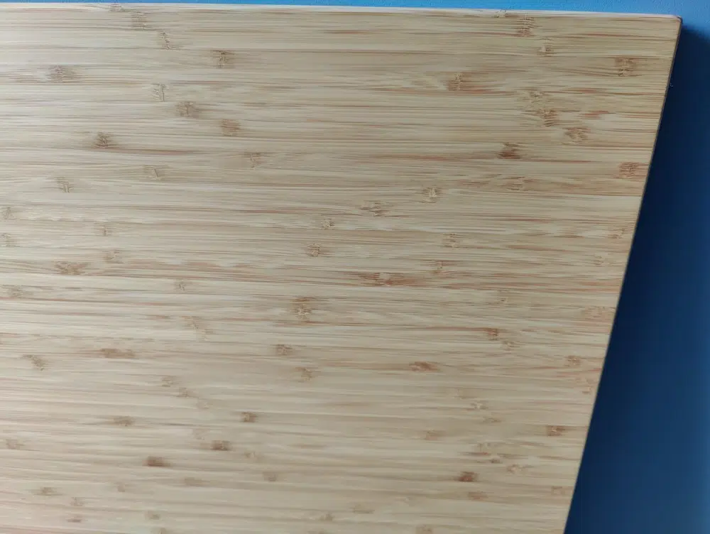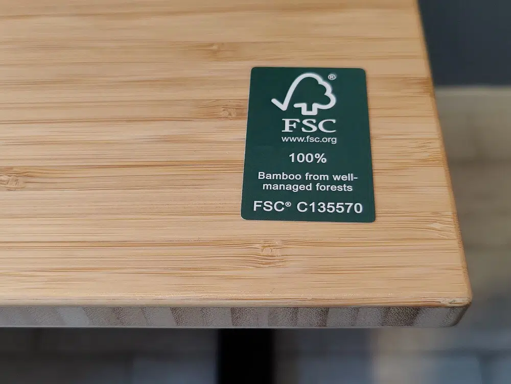 Le plateau est entièrement en bambou, avec l'aspect que l'on peut espérer en choisissant ce type de plateau au moment de la commande. FlexiSpot met en avant le fait que le bois utilisé soit issu d'une exploitation forestière légale associée à une gestion durable, grâce à la présence du label FSC. La finition du plateau est bonne et ce dernier est agréable au toucher.