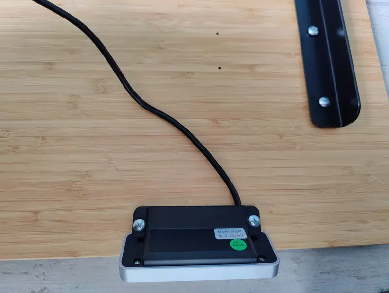 Puisqu'il y a une alimentation pour les moteurs dans les pieds et l'écran de contrôle, ceci implique d'effectuer un peu de câblage. Il n'y a pas à se tromper, car les connecteurs ne sont pas les mêmes. Les câbles seront maintenus et cachés par le passe-câble à fixer en dernier lieu.