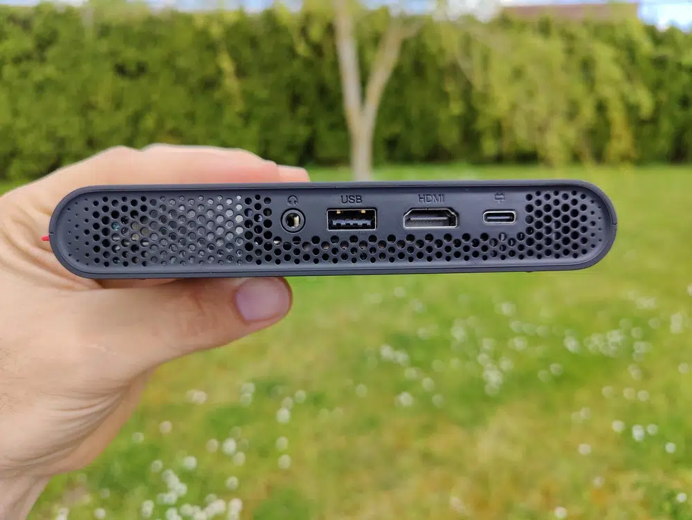 En ce qui concerne les haut-parleurs, soyons clairs : la qualité audio est médiocre. Dans un environnement relativement silencieux, c'est suffisant pour regarder une vidéo ou participer à une réunion. À l'inverse, si vous êtes plusieurs autour d'une table et que vous participez à une visioconférence diffusée via le Formovie P1, ce sera surement insuffisant. Heureusement, la prise Jack offre la possibilité de connecter une paire de haut-parleurs externes...